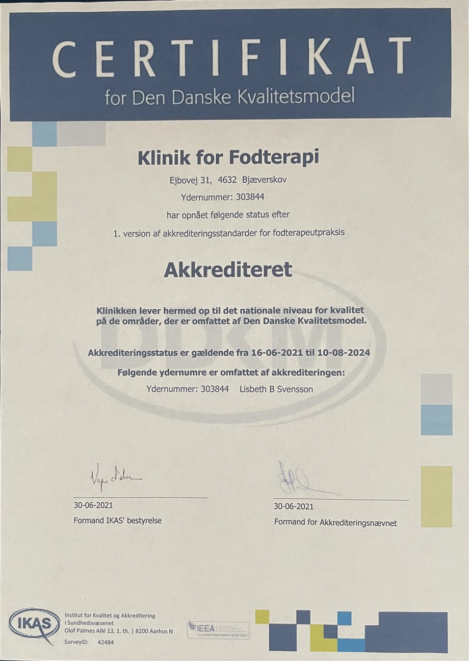 Akkreditering er det ultimative kvalitetsstempel, som en fodterapiklinik kan få af Sundhedsstyrelsen.